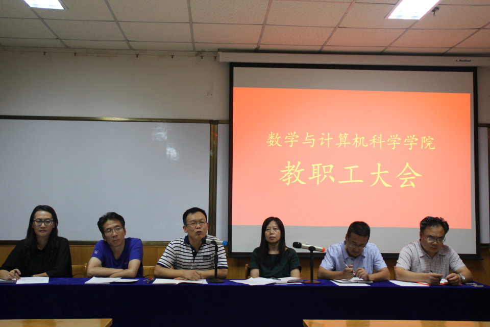 9月7日晚7时,ag旗舰厅官方网站在科学会堂A710报告厅召开全体教职工大会。会议对前一阶段工作进行了深入总结,对新学期的各项工作进行了全面部署。党委书记郝红霞、经理史建红、党委副书记杨亚东、副经理朱红康、安立坚、王洁以及全体教职工参加了本次大会。会议由副经理王洁主持。